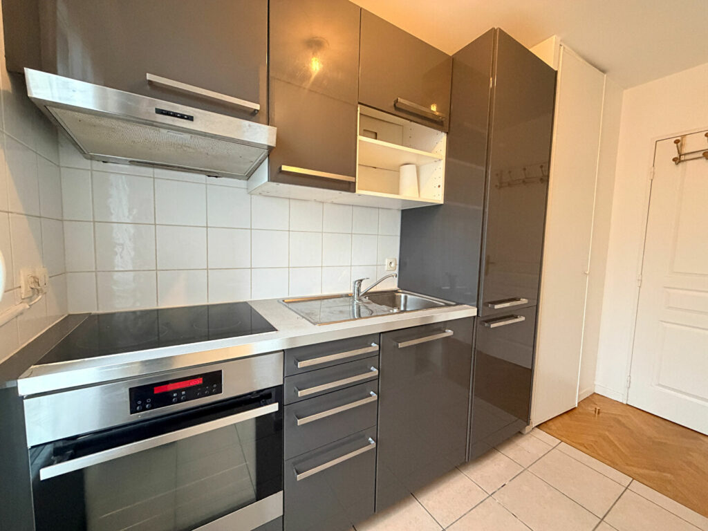 A 350m de la station de métro « Mairie des Lilas » et à proximité immédiate des commerces, des restaurants et des écoles, nous vous proposons un studio d’une superficie de 26.70m² situé au 1er étage avec ascenseur. Il se compose, d’une pièce principale avec une cuisine ouverte meublée et équipée (hotte, plaque de cuisson, four,) ainsi qu’une salle d’eau avec wc.